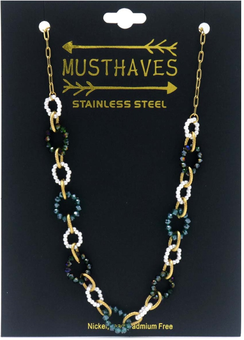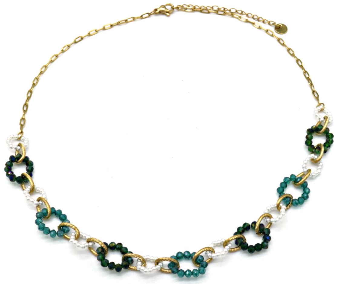 I-C3.1 N221-384 No. 6 S. Steel Necklace Faceted Glassbeads Green