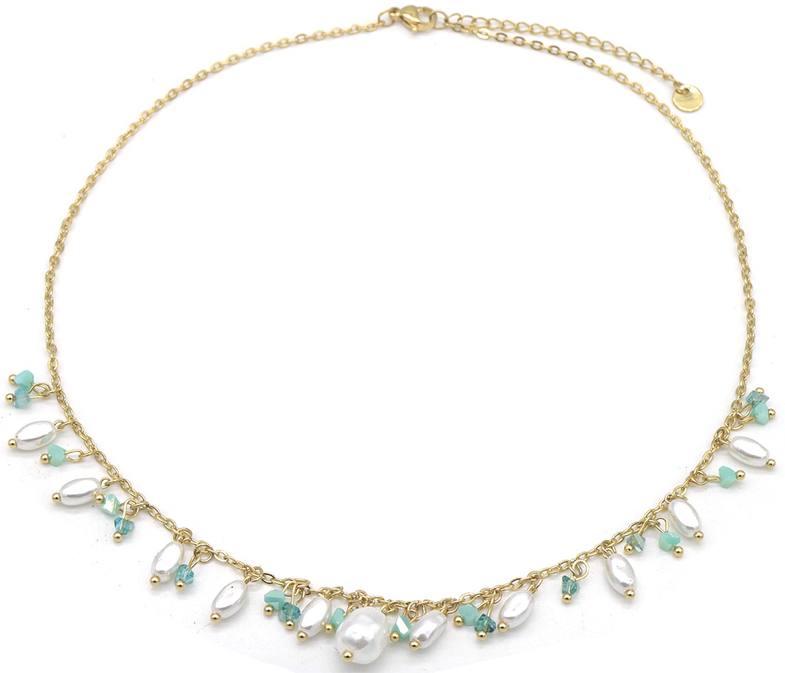 J-D5.2 N831-009G S. Steel Necklace Pearls