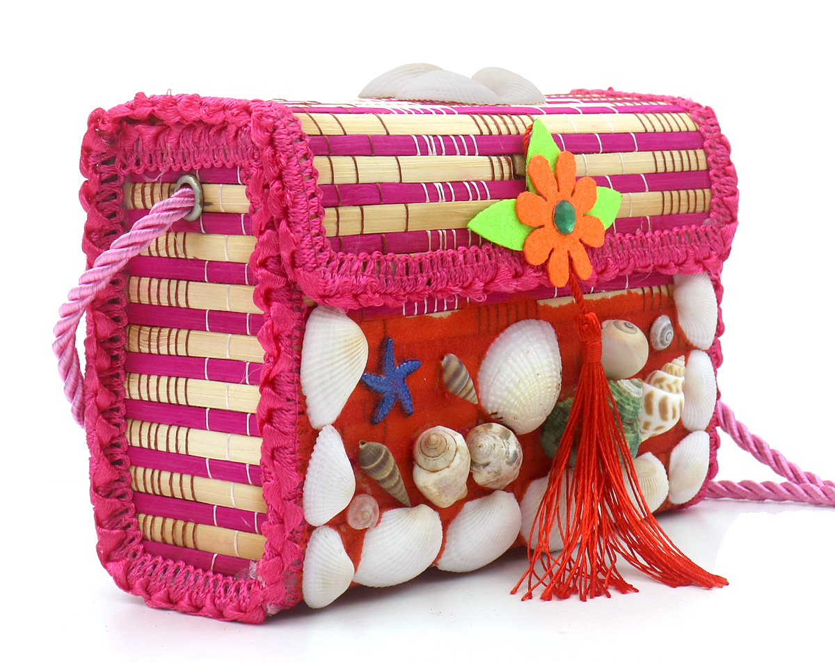 L-E7.1 BAG1159-003 Woven Bag Shells 15x11x7cm - Mixed Designs - 1pc
