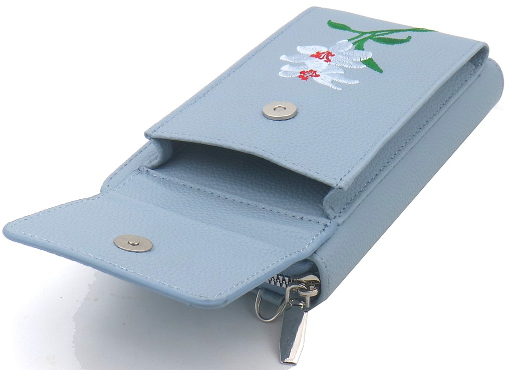 Q-M6.1 BAG1113-001-4 PU Bag Embroidered Flowers 18x10.5x5cm Blue