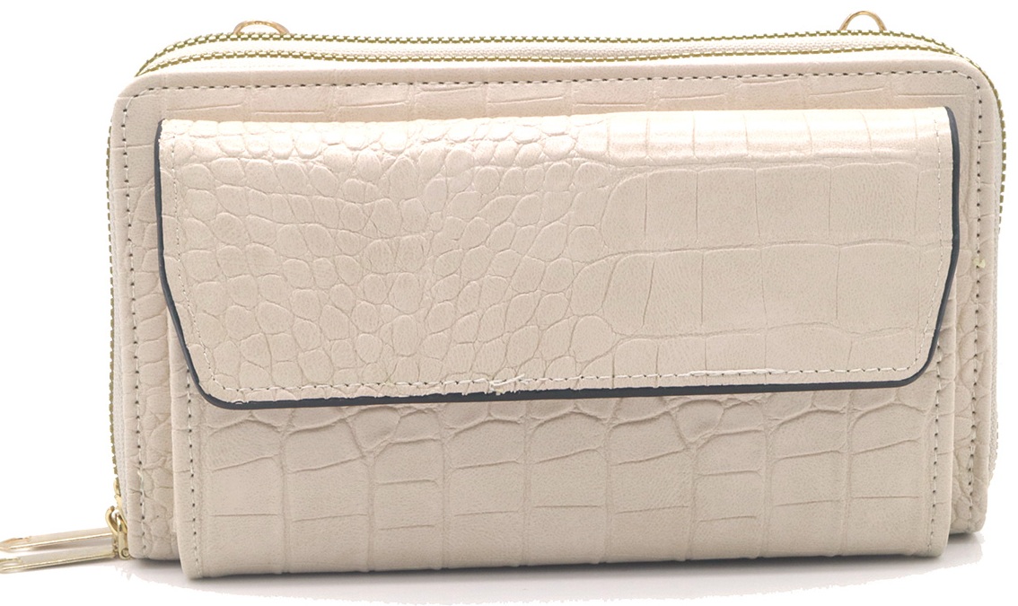 Q-O8.2 BAG1010-003-3 PU Bag Croco with 10cm Wallet 19x11x6.5cm Beige