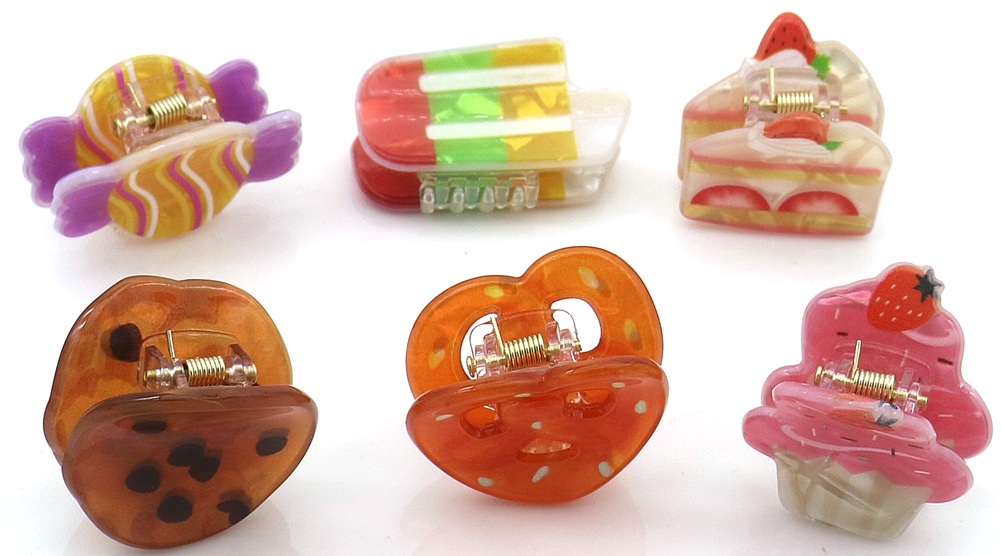 R-D3.2 H1126-003 Hair Clips Desserts 2.5cm - 3.5cm - 12pcs