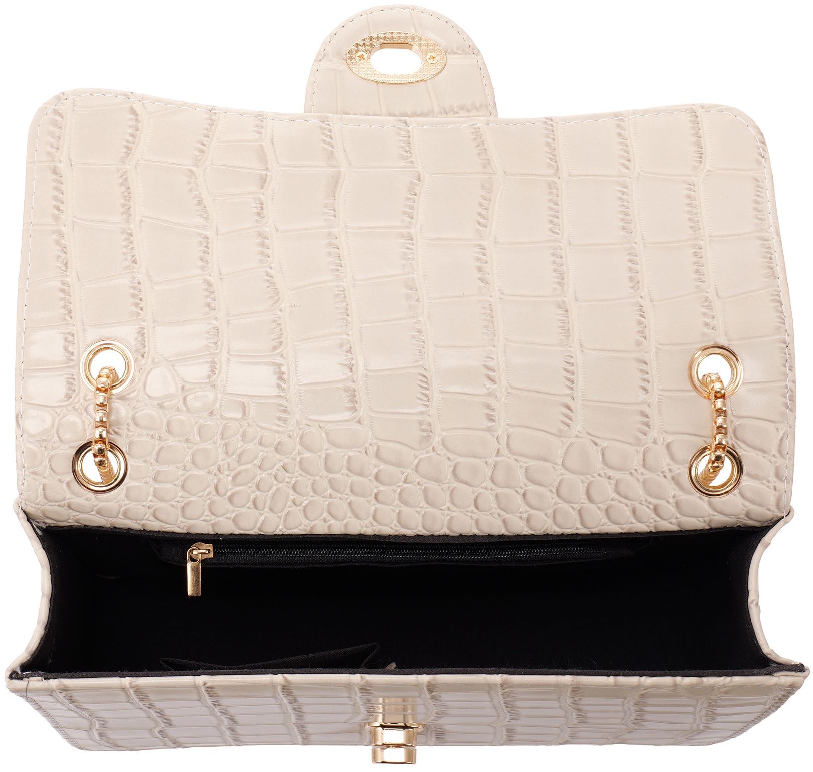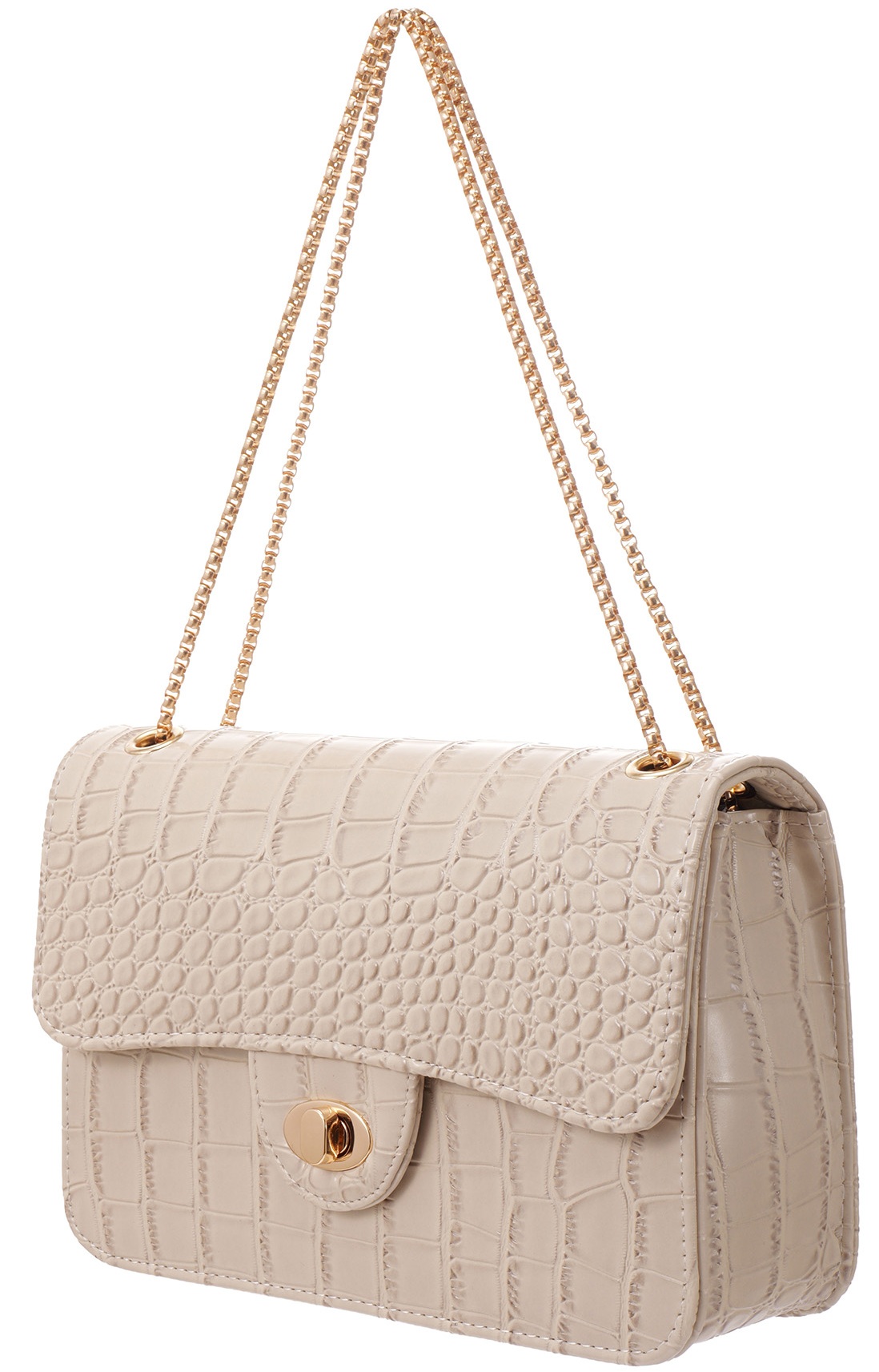 R-D8.1 BAG1117-005-2 PU Bag Faux Crocodile 27x17x7.5cm Beige