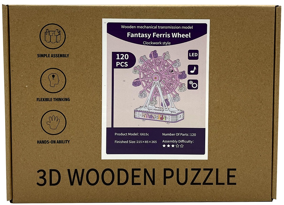 R-F3.2 TOY1153-002 Wooden 3D Puzzle - Sound - LED - Moving- Ferris Wheel