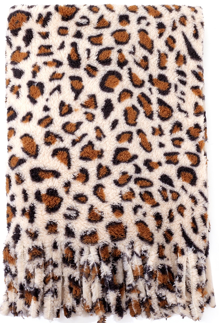R-H7.1 SCARF1006-002-3 Soft Winter Scarf Leopard 180x60cm Beige