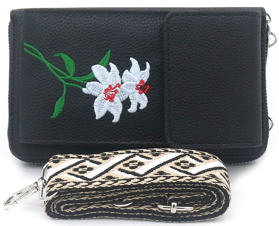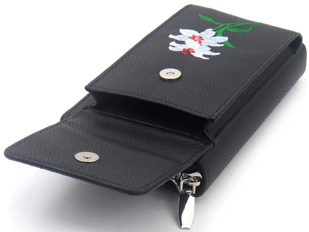 Produktinformationen "R-N8.2 BAG1113-001-1 PU Bag Embroidered Flowers 18x10.5x5cm Black"