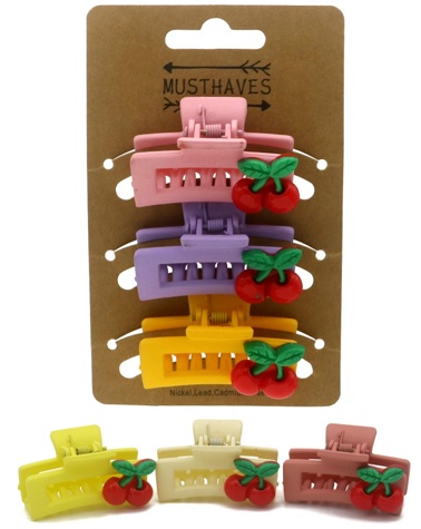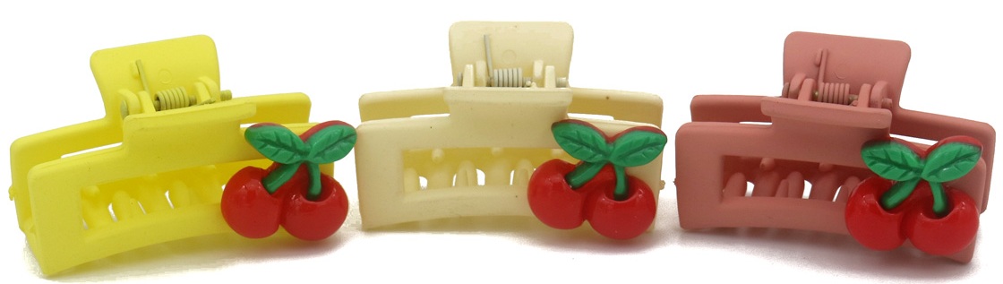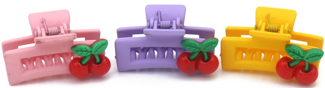 S-C1.2 H1127-003 Hair Claw 4.5cm Cherries Mixed Colors- 3pcs