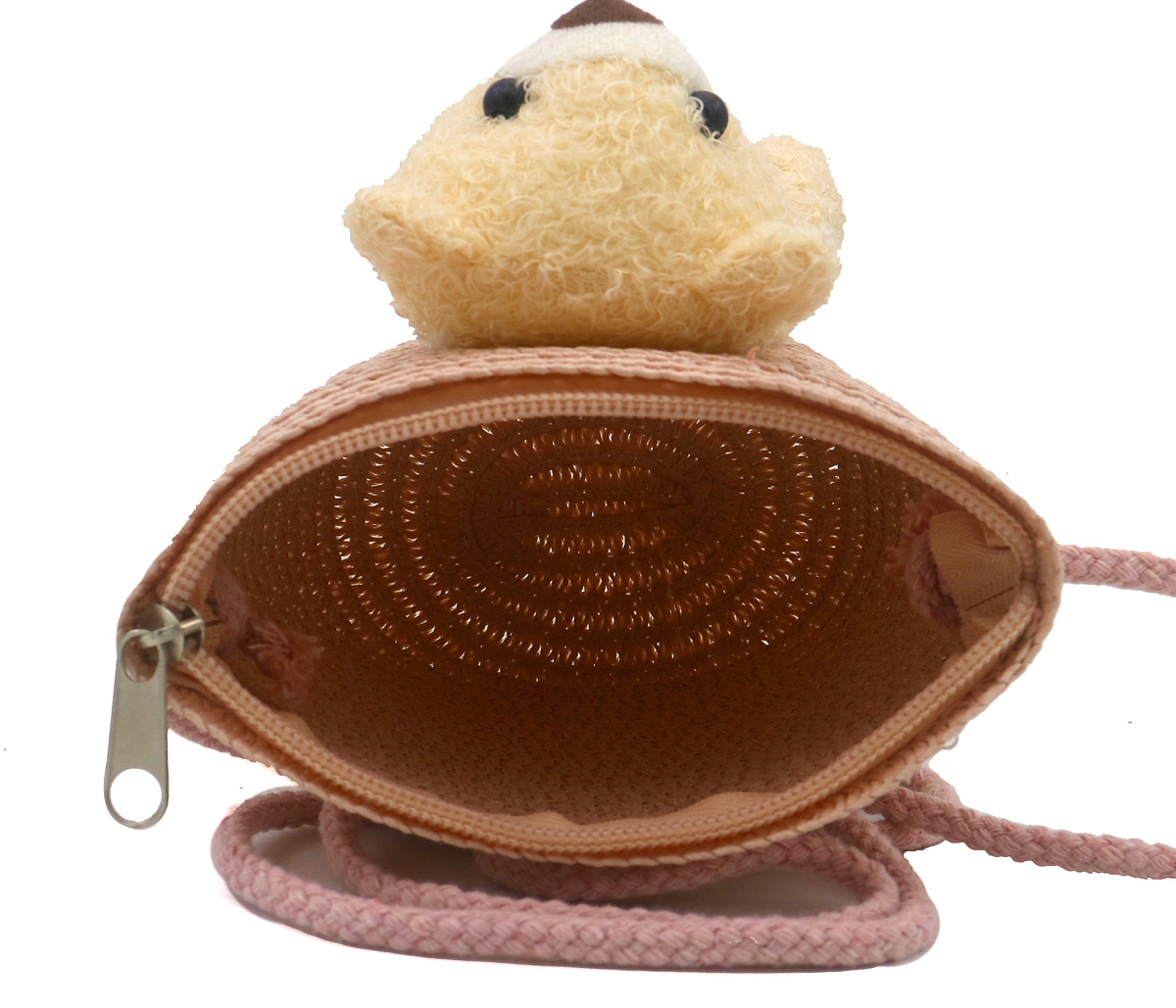 S-C1.3 BAG1120-003-1 Woven Kids Bag Bear 12.5x14.5x5.5cm Pink