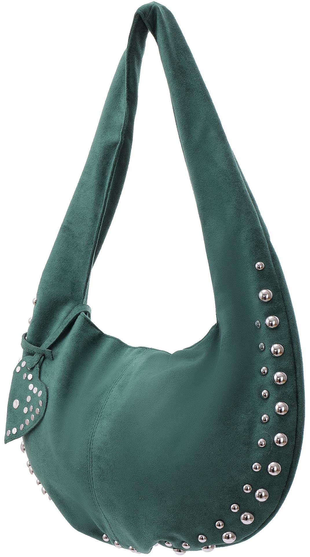T-I3.1 BAG1117-006-4 PU Bag Suede Look with Studs 36x22cm Green