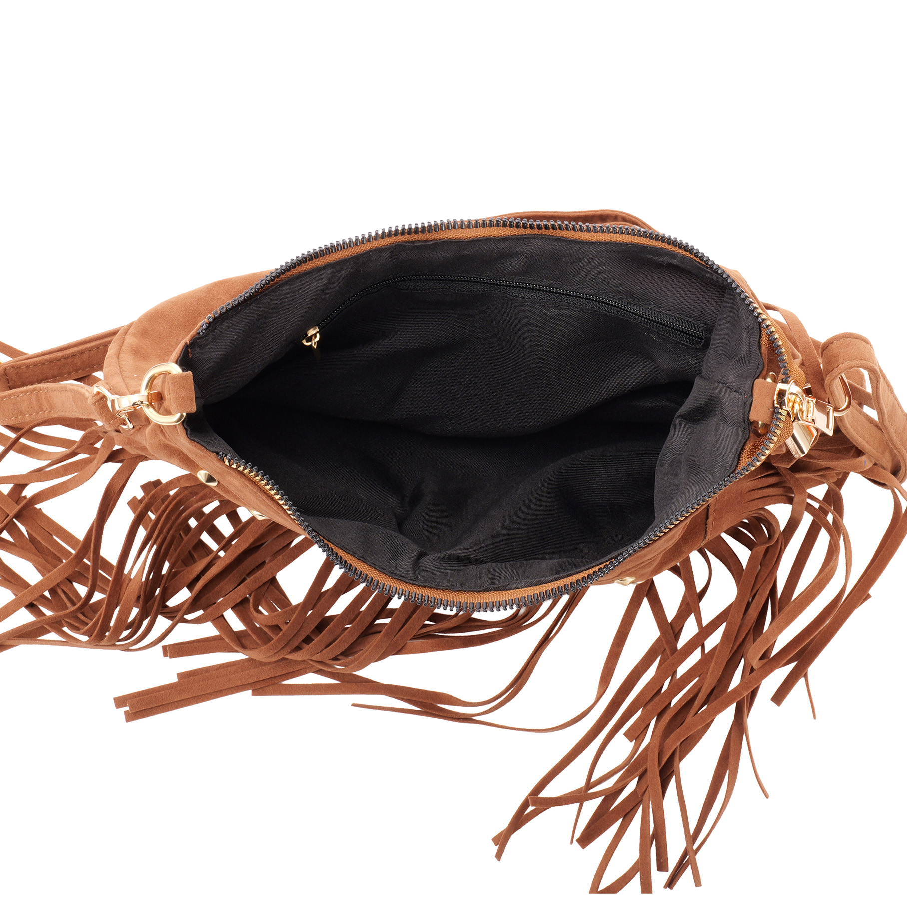 T-I4.2 BAG1122-002-4 PU Bag with Studs and Tassels 28x19cm Brown