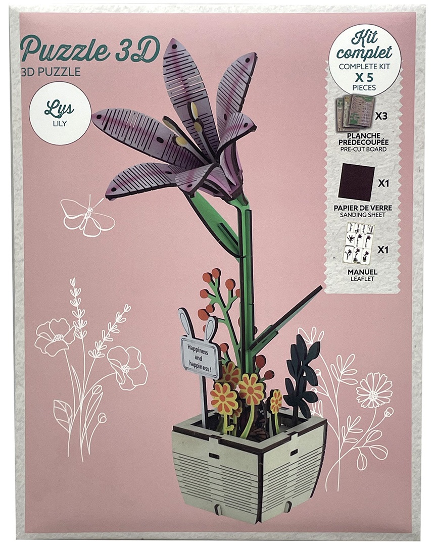 Entfesseln Sie Ihren inneren Künstler und erwecken Sie diese wunderschöne Blume zum Leben – perfekt für die Präsentation auf einem Regal, Schreibtisch oder als Teil Ihrer Inneneinrichtung. Machen Sie sich bereit für eine wunderbare Reise des Zusammenbauens und der Kreativität mit dem X-C10.2 3D-Puzzle aus Holz „Blume“!