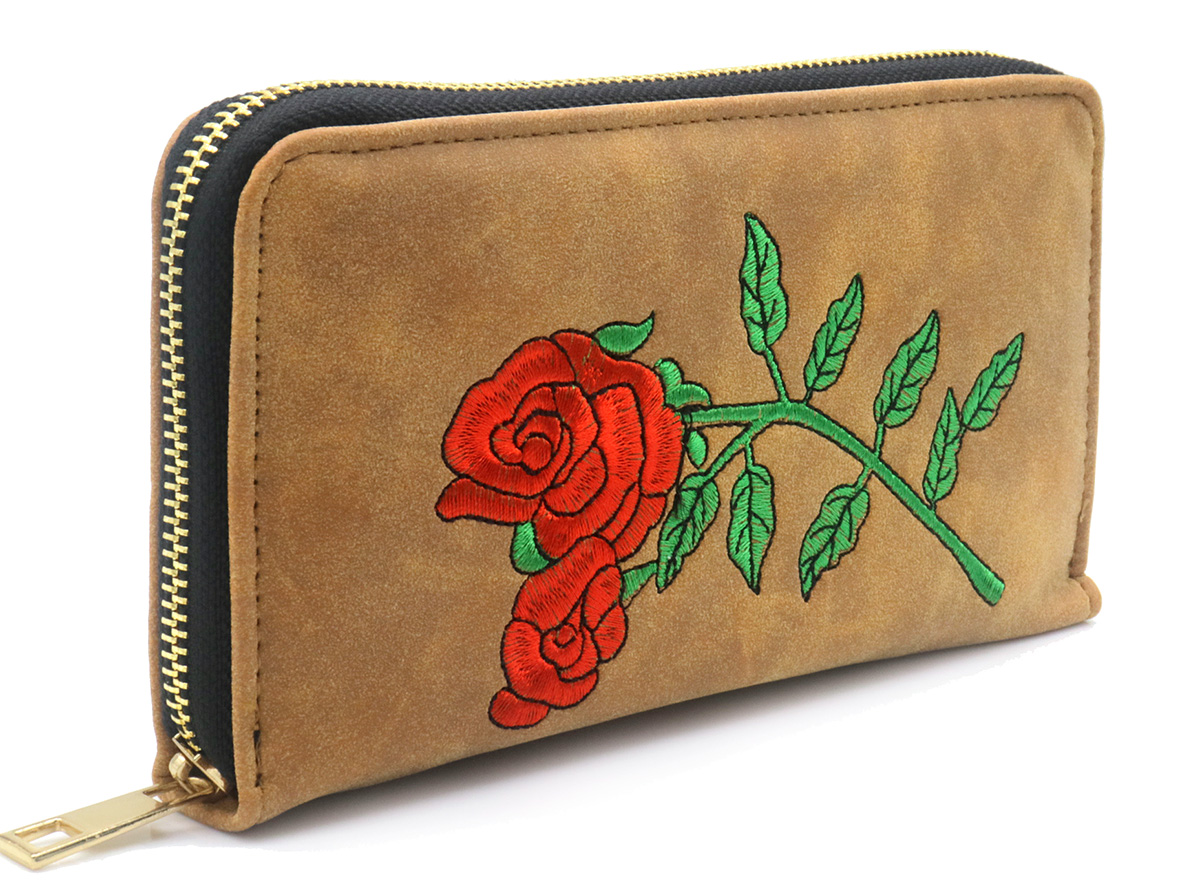 X-P9.3 WALLET1019-003-4 Pu Wallet Roses Embroidery 20x10x2.5cm Brown