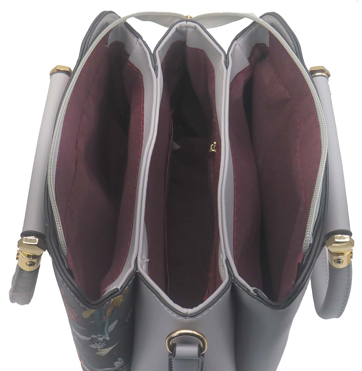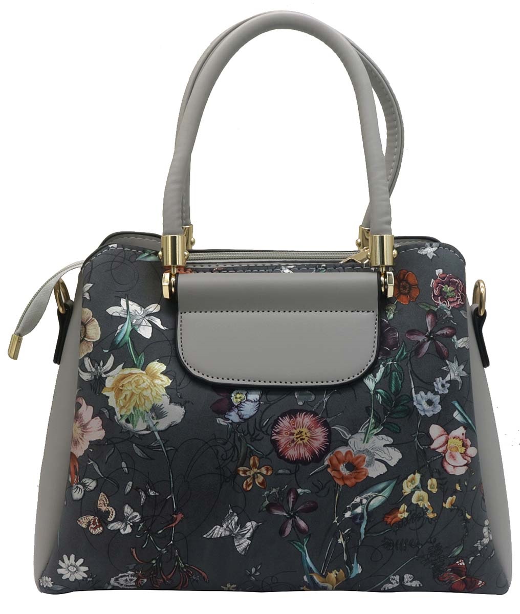 Y-A6.4 BAG734-002 No. 2 PU Bag Floral 30x24x12cm Grey
