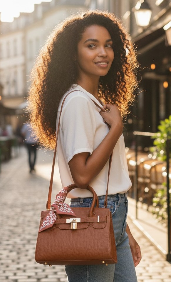 Der satte Braunton sorgt für einen Hauch von Raffinesse, während der mitgelieferte Schal einen verspielten Farbtupfer bietet und auf verschiedene Weise passend zu Ihrem Outfit gestylt werden kann. Egal, ob Sie ins Büro, zum Wochenendbrunch oder zum Ausgehen gehen, diese Tasche ist die perfekte Ergänzung zu jedem Ensemble.