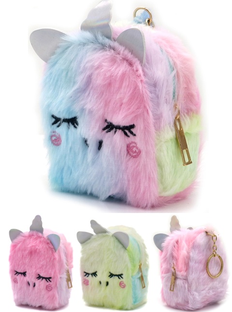 Z-D2.1 KY1154-003 Fluffy Keychain Wallet Unicorn 9x7x5cm - Mixed Colors - 1pc